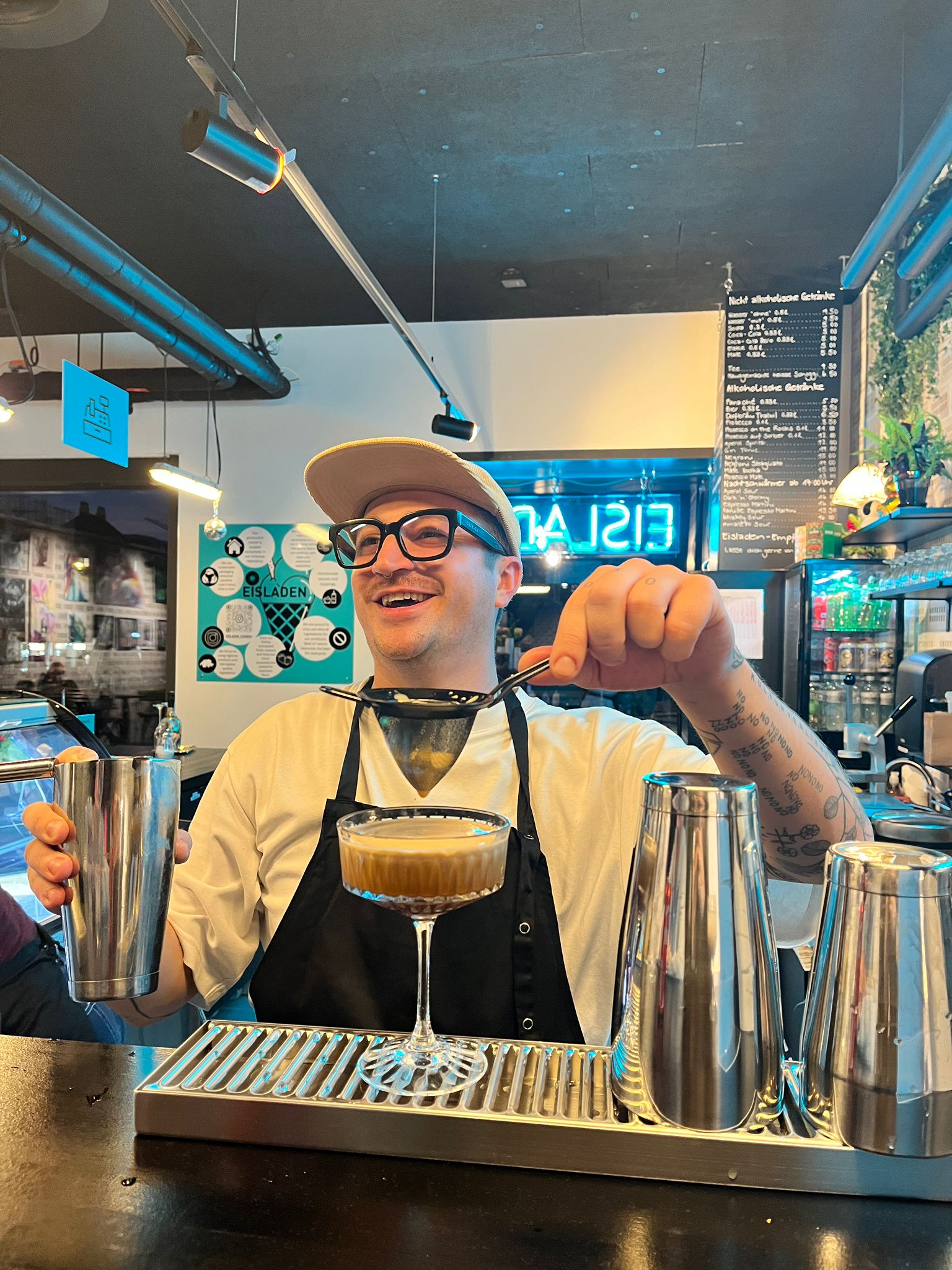 Apropos saisonale Abwechslung: Unsere belgische Waffel mit Lebkucheneis ist ein absolutes Muss für jede Naschkatze. Leidenschaft, die man eben fühlt und nicht nur schmeckt! Gepaart mit Kunst und Kultur verwandelt sich der EISLADEN zu einem Ort der Begegnung und Toleranz. Ein Szenetreff voller Kunst, mit alten Möbeln, warmen Licht, grünen Pflanzen, ausgefallen Drinks im Eisladen-Flair, einem Schuss Berlin sowie nationalen und internationalen Künstlern zu ausgewählten Veranstaltungen.